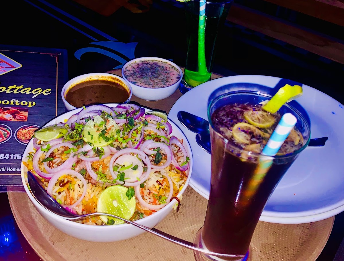 The menu at Food Cottage Cafe & Rooftop is carefully curated, showcasing a mix of classic Indian flavors and comforting favorites. Start your culinary journey with a bowl of Manchow Soup (₹119), a delightful medley of spices that warms you right up. If you prefer something heartier, their Veg Biryani (₹189) is a fragrant feast for the senses, bursting with aromatic spices and tender vegetables. And for those craving something meaty, the Chicken Biryani (₹239) is not to be missed—it's not just affordable, but also rich in that sought-after, royal Lucknowi flavor.